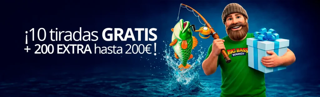 - 10 tiradas gratis en el juego Big Bass Bonanza.